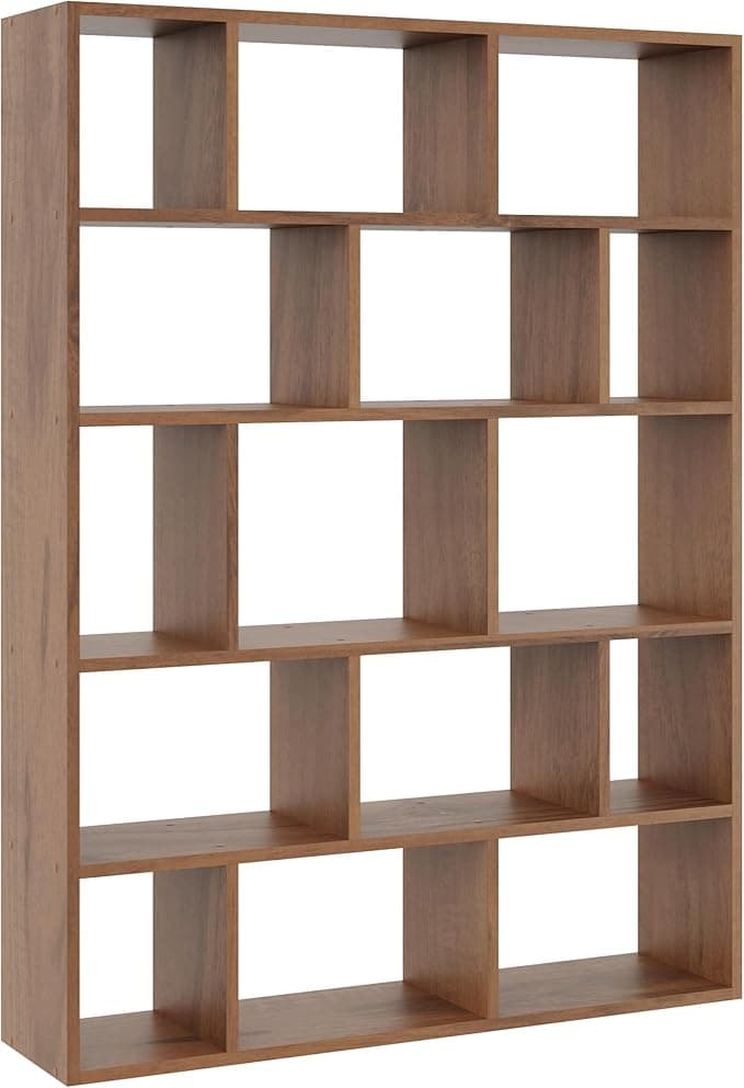 KUBUTKU Estantería grande de pared con 15 compartimentos, 141 x 105 x 18 cm, ideal para salón, dormitorio, oficina (nogal)