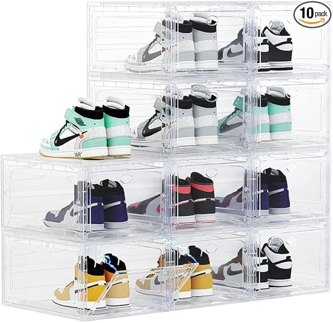 Buy OMOPIN Large Clear Plastic Shoe Boxes Stackable Organizing Sneaker, 10 Pack Drop Front Shoe Storage Boxes for Closet, plastic shoe storage entryway for Size 12 (Clear 10 Pack): Boot & Shoe Boxes - Amazon.com ✓ FREE DELIVERY possible on eligible purchases