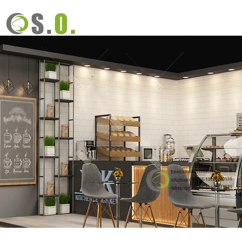 Commercial Coffee Shop Furniture Set Wooden Cafe Chair Restaurant Coffee Bar Cabinet