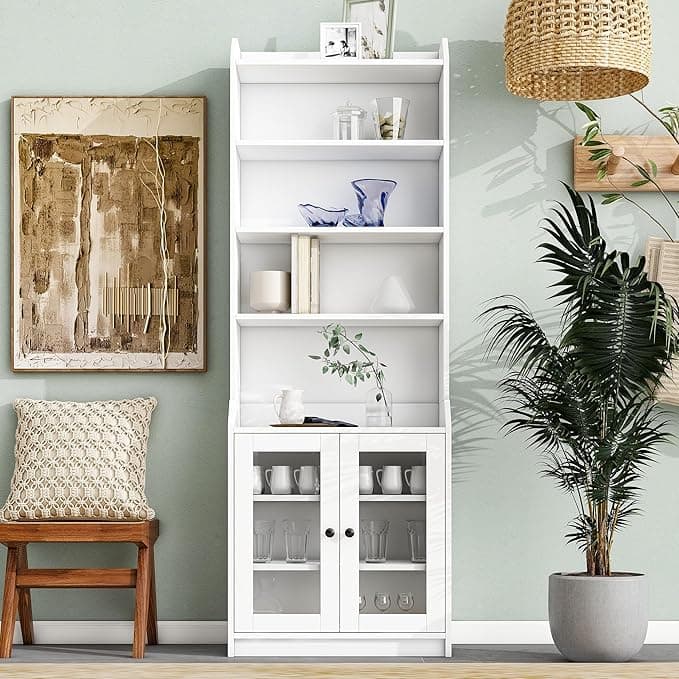 Diliplain 78.3'' Tall Cabinet, Free Standing Storage Cabinet with Doors and Adjustable Shelves, Multifunction Bookshelf for Living Room, White
