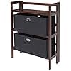 Winsome Wood Torino 3-PC Set Folding Bookcase w/Fabric Basket Storage and Organization, Antique Walnut/Black