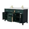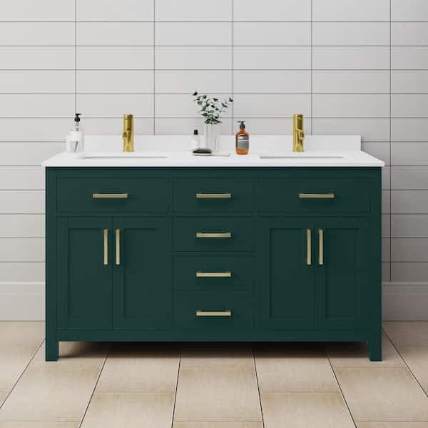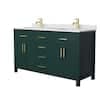 Wyndham Collection Beckett 60 in. W x 22 in. D x 35 in. H Double Sink Bathroom Vanity in Green with White Cultured Marble Top