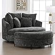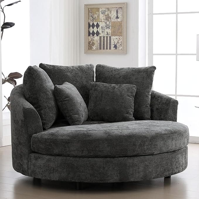 Buy Sinzho & Wiyfun 59.8" W Upholstered Oversized Round Barrel Chair Extra Large Accent Chair with Wheels & 5 Pillows for Living Room, Knitted Chenille Fabric, Grey: Chairs - Amazon.com ✓ FREE DELIVERY possible on eligible purchases