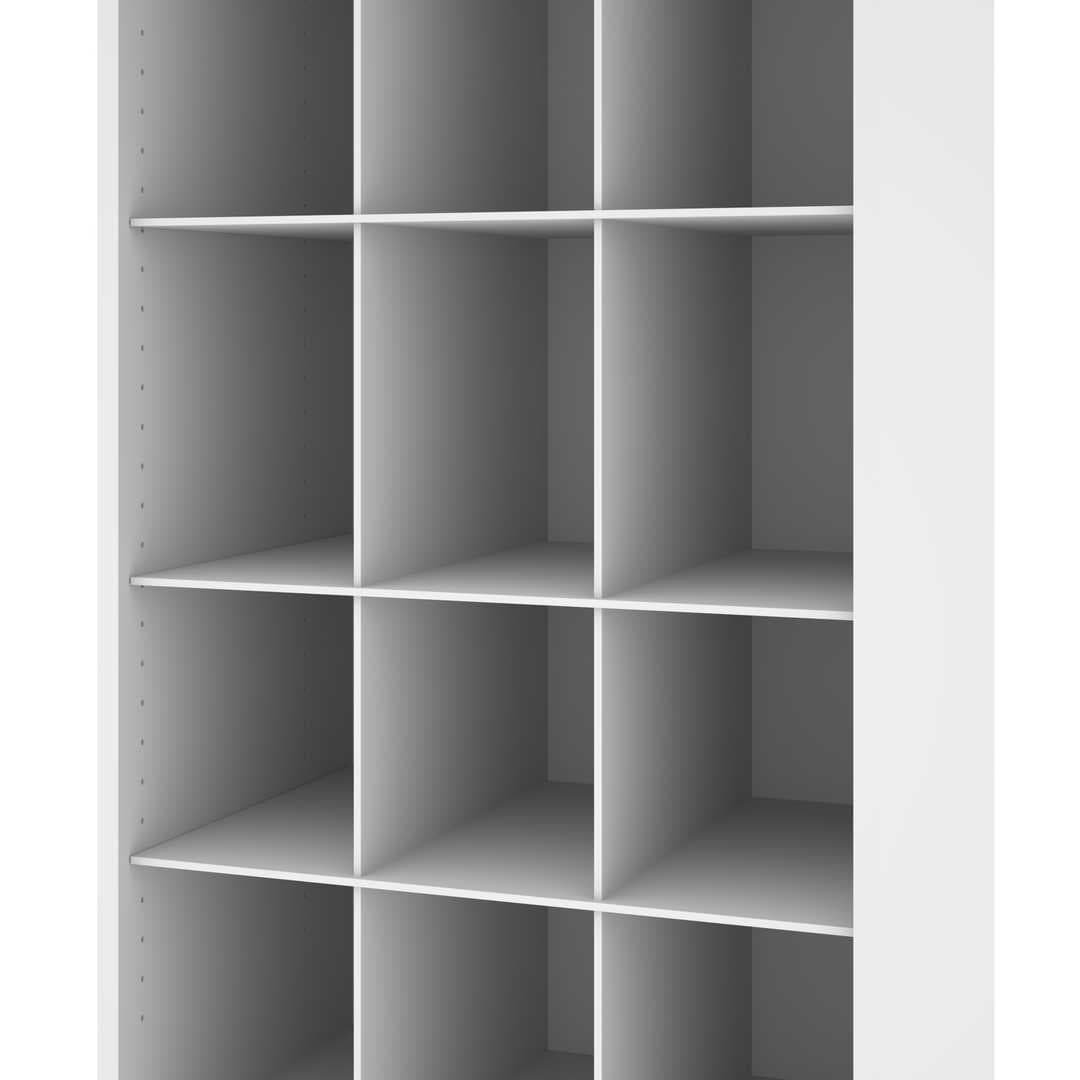 The Traditional Closet System with Shoes Racks & Cubbies, 25W x 20D is the perfect solution to keep your shoes and accessories organized with style. Thanks to its compact design, it fits easily into the room of your choice. Use this shoe organizer in your closet, bedroom, or entryway to keep everything you need to get ready in full view and close at hand. Get your home in order with twelve cubbies for easy access to hats, bags, gloves, and more. Four spacious slanted shelves feature front lips to prevent items from sliding off, making them a great location to display your large shoe collection, or even handbags or clothes. Designed for use as a standalone closet organizer or as part of a larger configuration when paired with coordinating items from the Versatile Collection (sold separately), this small closet organizer provides ample opportunities for keeping your home in order without overwhelming your floor space. This piece is an essential if you have a walk-in closet. It offers all the shoe storage you need. Attractive crown moldings beautifully complement the elegant finish of your choice. This shoe cabinet is backed by the Bestar 10 Year Manufacturer’s Warranty. North American made with globally sourced materials.