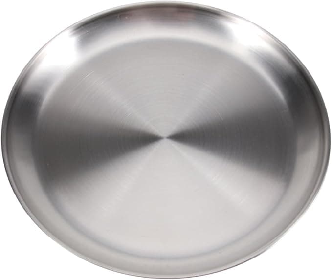 Package Include: 1 x Round flat plate. Features: - Warm Tip: Dear buyer, Due to lighting effect, monitor's brightness, manual measurement and etc, there could be some slight differences in the color and size between the photo and the actual item. Sincerely hope that you can understand! Thank you! - Size: 20 x 20 x 2cm stainless steel plates for camping. - Material: Stainless Steel titanium - Color: Silver pizza pan for grill. - Simple shape design, polished surface, make it shiny and lightweight serving tray round. - Suitable for snacks, fruits, appetizers, and etc steel. - Made by stainless steel material, and provide barbecue plate. - Smooth surface, no edges, comfortable to use silver jewelry tray.