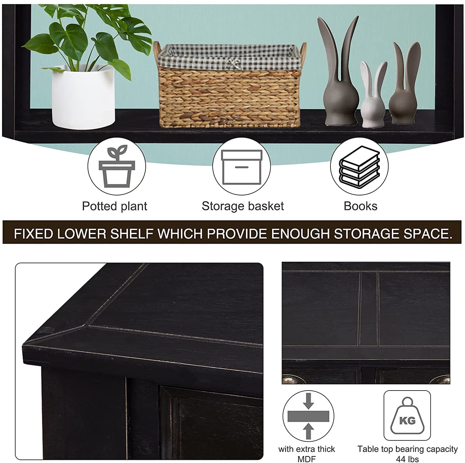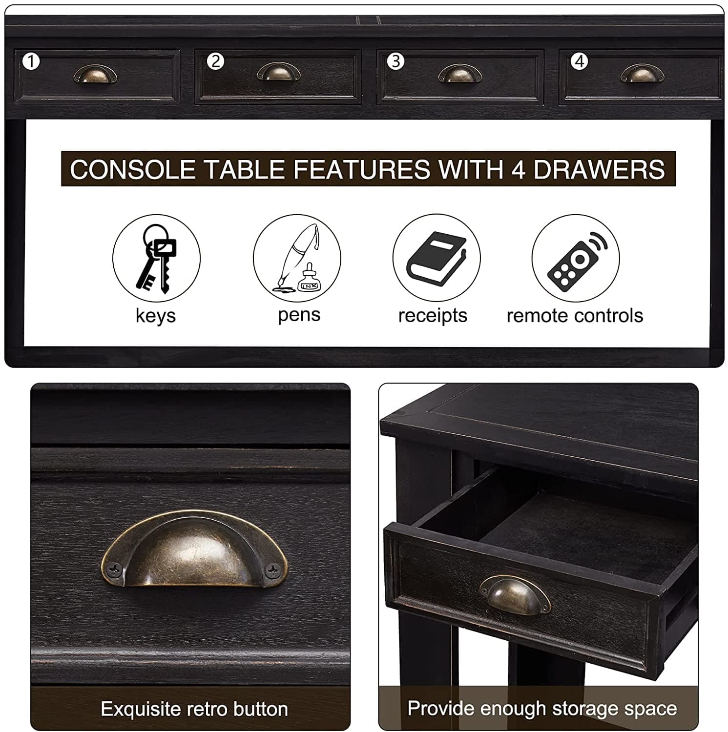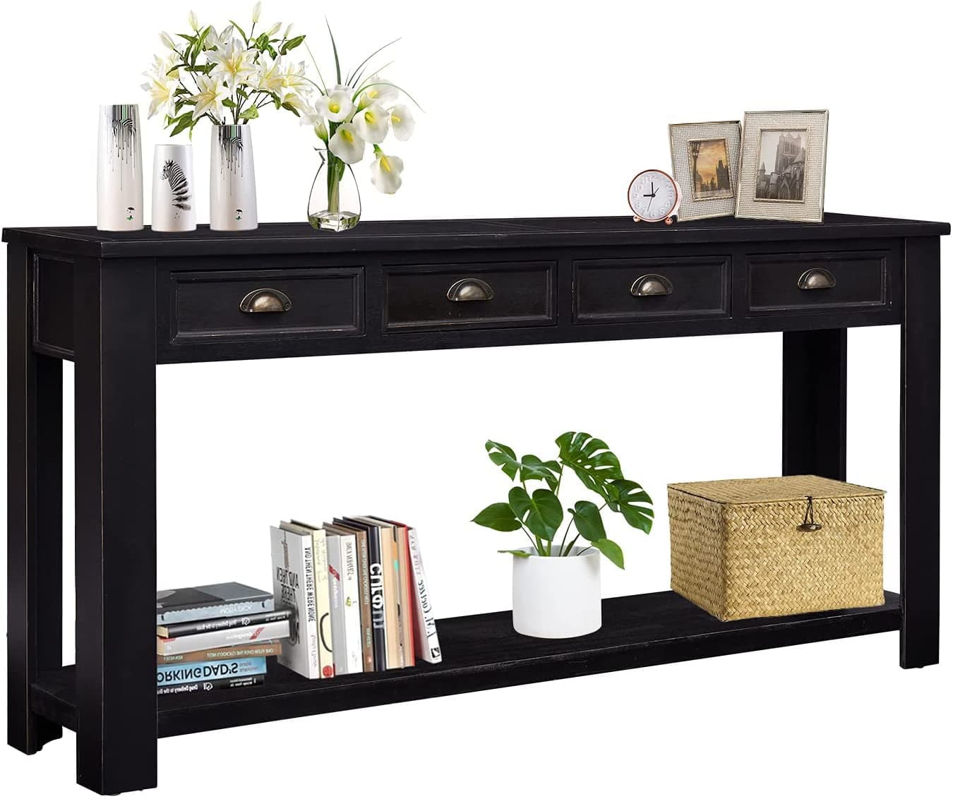 Kinbor 60'' Console Table Entryway Hallway Decoration Drawers Shelf Painted Black Rustic
