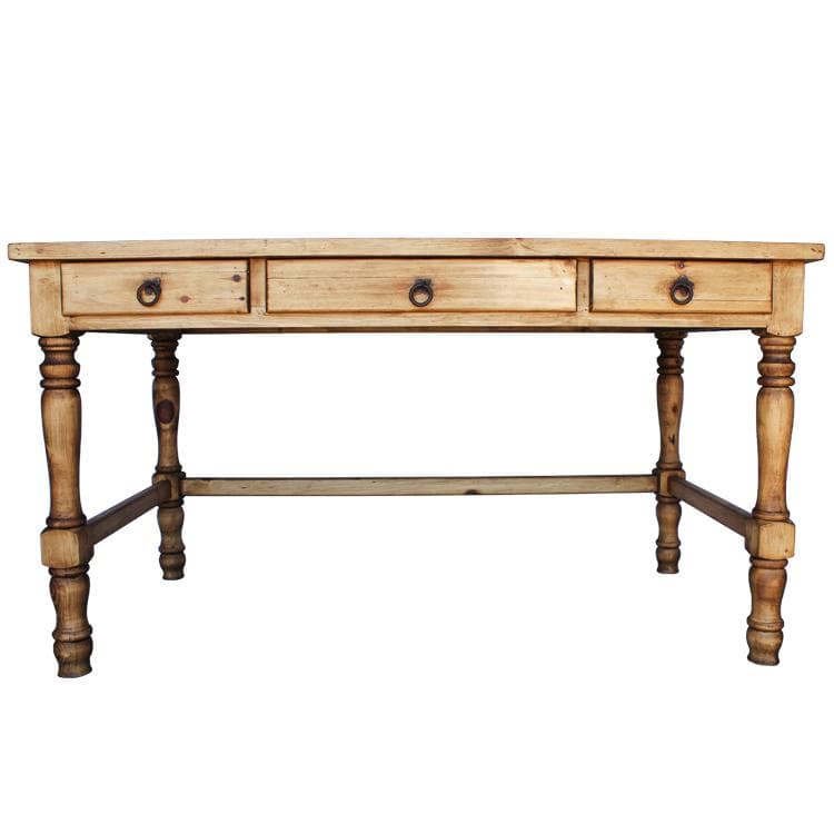 The Venice Desk provides a large writing area with three spacious pine drawers to meet your writing needs. Featuring rustic iron hand pulls and elegantly turned legs, it brings a simple charm to your decor. Handmade in Mexico from solid pine, it offers sturdy construction.