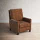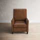 This recliner is upholstered with golden brown genuine leather for a classic and elegant look. Plus, it's easy to wipe clean with a dry cloth – so don't worry if that post-dinner cherry cobbler spills. We love how its classic flared arms, straight back, and tapered feet blend in with your other traditional furniture. Its seat cushion is filled with fiber-wrapped foam and supported by sinuous springs to keep you comfortable during family movie night. And reclining couldn't be easier: All you need to do is push back.