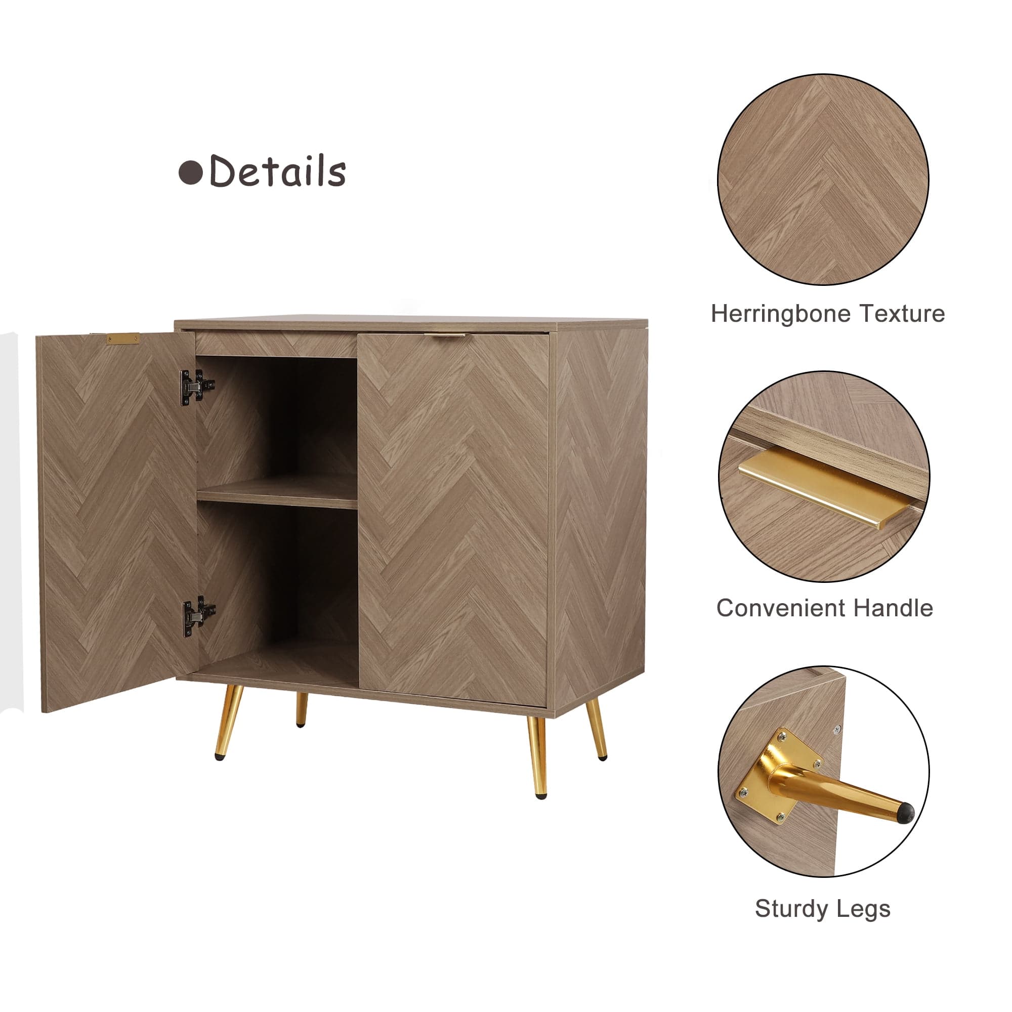Eumyviv Sideboards and Buffet with 2 Doors, Natural Oak Accent Cabinet Herringbone Finished, Storage Cabinet for Living Room, Bedroom, Kitchen, H0058