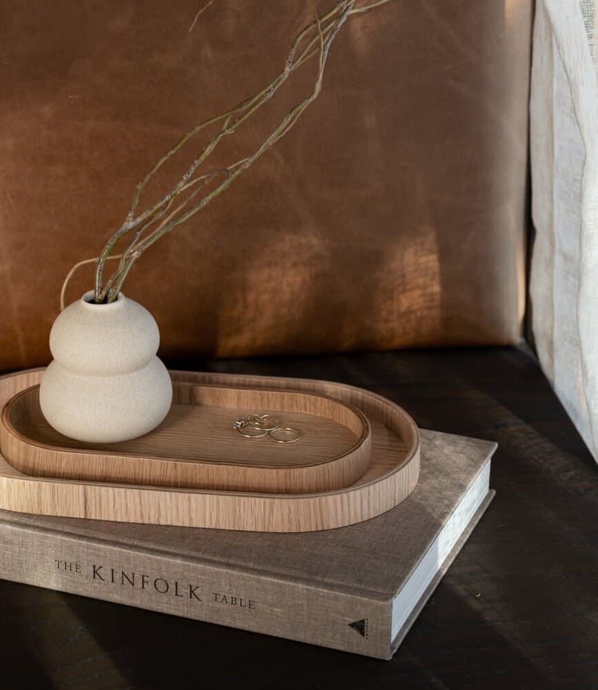 A beautiful tray made of oiled oak veneer from the Danish brand EKTA Living. The tray is a multifunctional object, it collects your little bits and bobs or puts some beautiful LED candles on it for decoration. Tray size: 11x23x2cm (also available in 16.5x30x2cm)