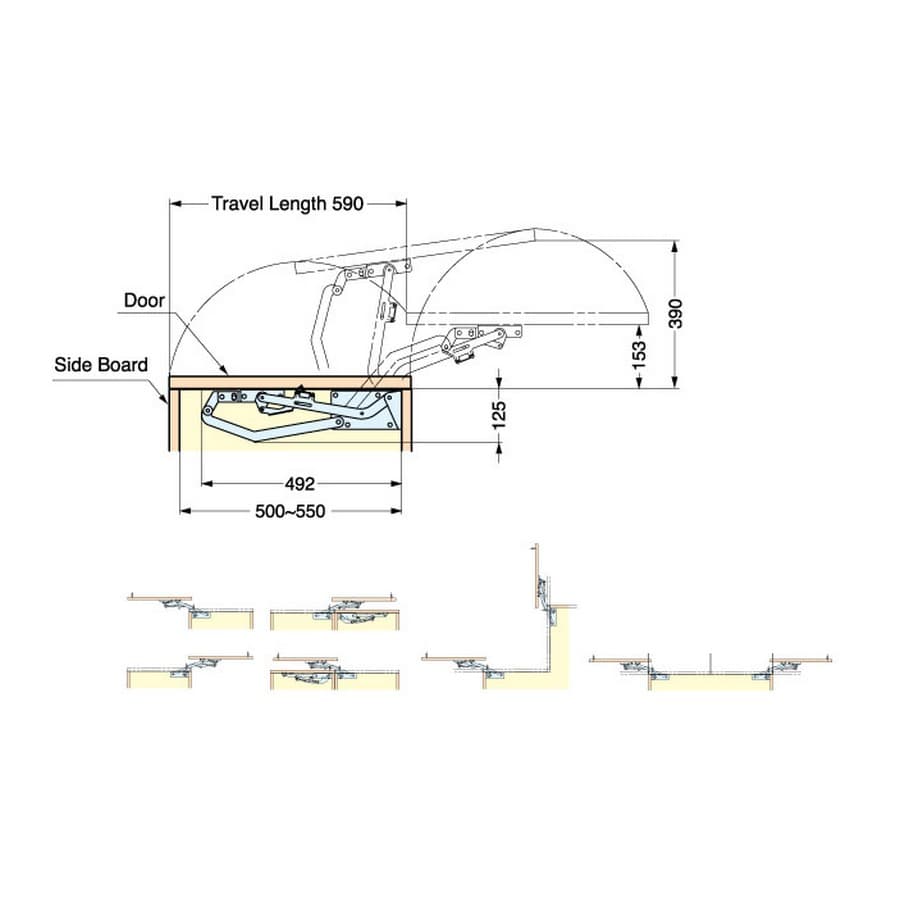 Lateral Opening Mechanism Allows doors to swing out laterally in a small radius, ideal for tight front space application. Smooth Movement Built-in gas spring provides a smooth self opening & closing movement. Various applications Can be used in single or double door configuration. Ideal for storage cabinets in kitchen, closet room, bathroom, laundry room etc. For overlay use.