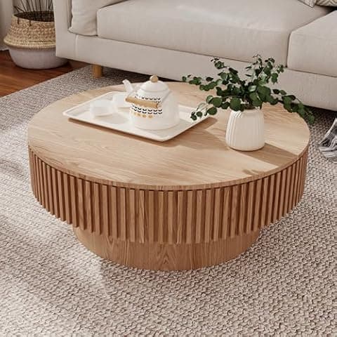 Fashionable and Stylish: This coffee table features a stylish design and a perfect combination of storage space under the lid, the unique mushroom shape with fluted design will effortlessly blend with your existing decor, whether you prefer a contemporary or minimalist style. Sturdy and Durable: Made of high-quality MDF, it has excellent stability and durability. The solid wood veneer not only makes this coffee table more durable, but also can be kept as new after regular cleaning. Covert Storage: The hollow interior provides a hidden storage space for magazines, books, toys or your coffee table essentials within reach. Multifunctional Use: This coffee table can also be used as a decorative display table, or just as a simple accent piece for your living room, bedroom, office, or any places that needs extra storage.