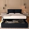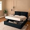 Baldiflex Lit double avec conteneur modèle Licia Soft en tissu, sommier à lattes pour matelas simples 180 x 190 cm, tête de lit finement rembourrée, couleur noire