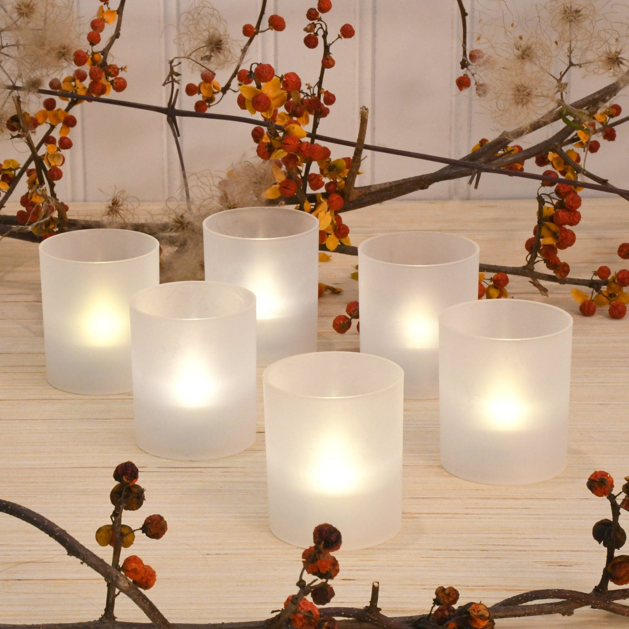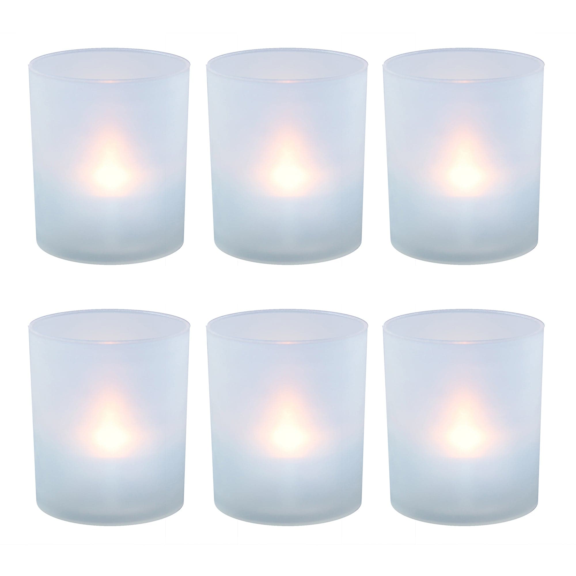Frosted Votives with Battery Operated LED Lights - Set of 6 - Warm White