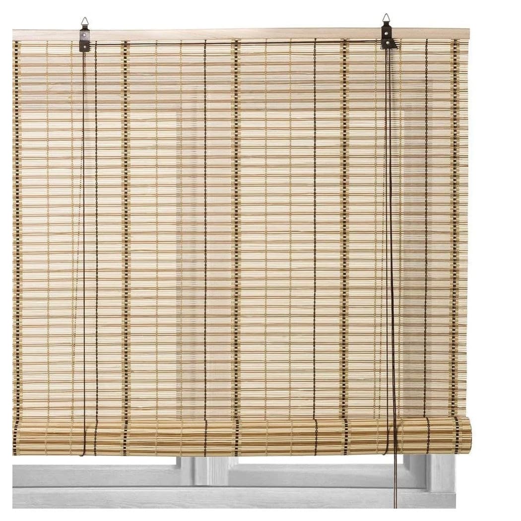 Protéjase del sol en los abrasadores días de verano con un toldo retráctil de bambú. Decore y vista las ventanas de su casa en un abrir y cerrar de ojos con un versátil y asequible estor enrollable de bambú natural y cree un nuevo aspecto exótico para su salón, baño, cocina o dormitorio. El estor enrollable está fabricado en madera de bambú natural, lo que lo distingue de otros del mercado por su hermoso diseño exótico. Un práctico estor enrollable con un cómodo sistema de subida y bajada mediante un cordón negro de 10,5 metros. El estor enrollable de bambú beige está equipado con un mecanismo de rodillo para subirlo y bajarlo, tiene herrajes metálicos en la parte superior, una polea de rueda y 2 anillos triangulares.