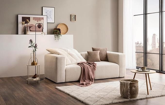 DOMO. collection Sofá Adrian, sofá Modular de 2 plazas Compuesto por Dos sillones esquineros, sofá Grande, sofá Modular, 2 Cojines Individuales, sofá de 2 plazas, 216 x 108 x 69 cm, Color Crema