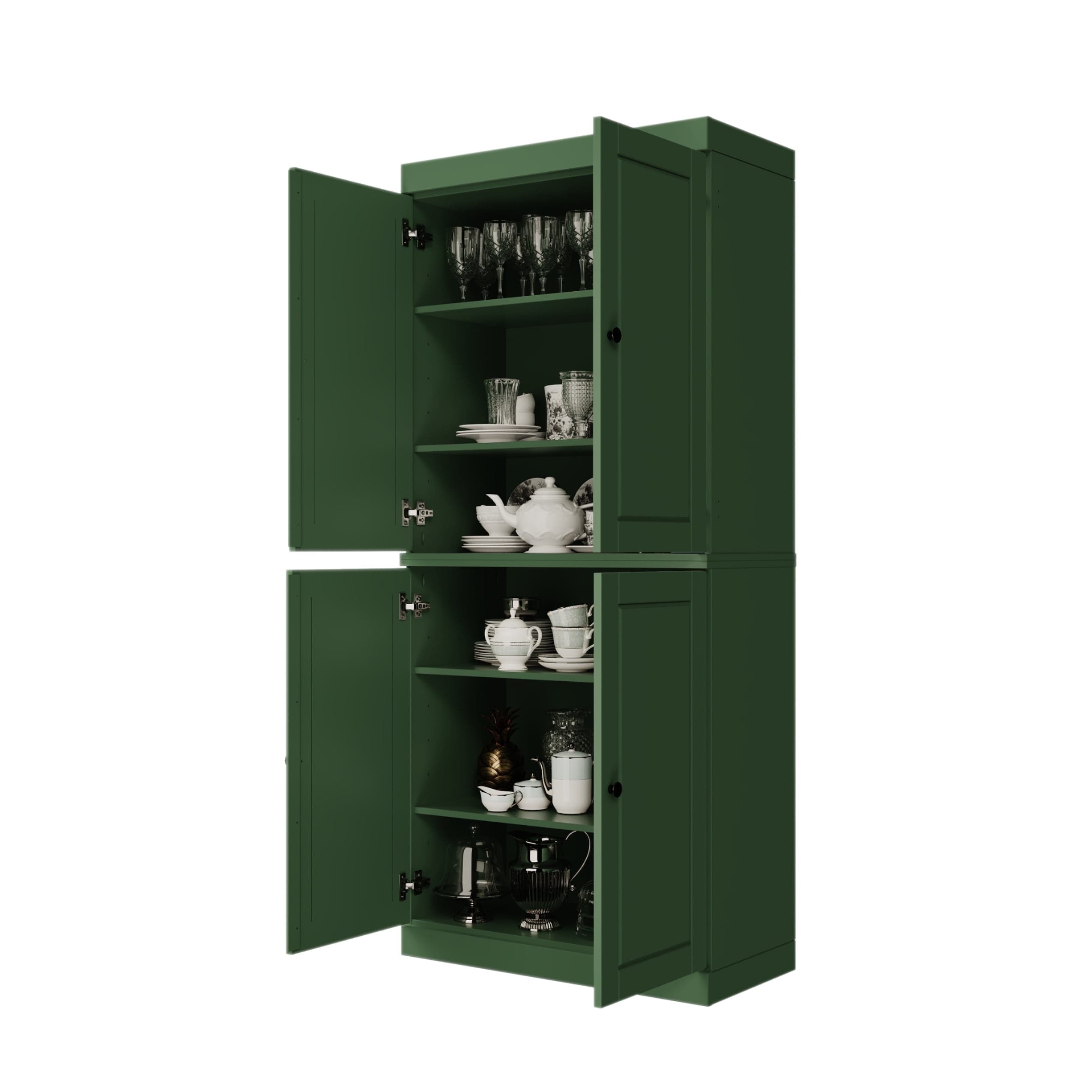 Palace Imports 100% Solid Wood Kitchen Pantry Storage Cabinet with Doors and Adjustable Shelves, Green