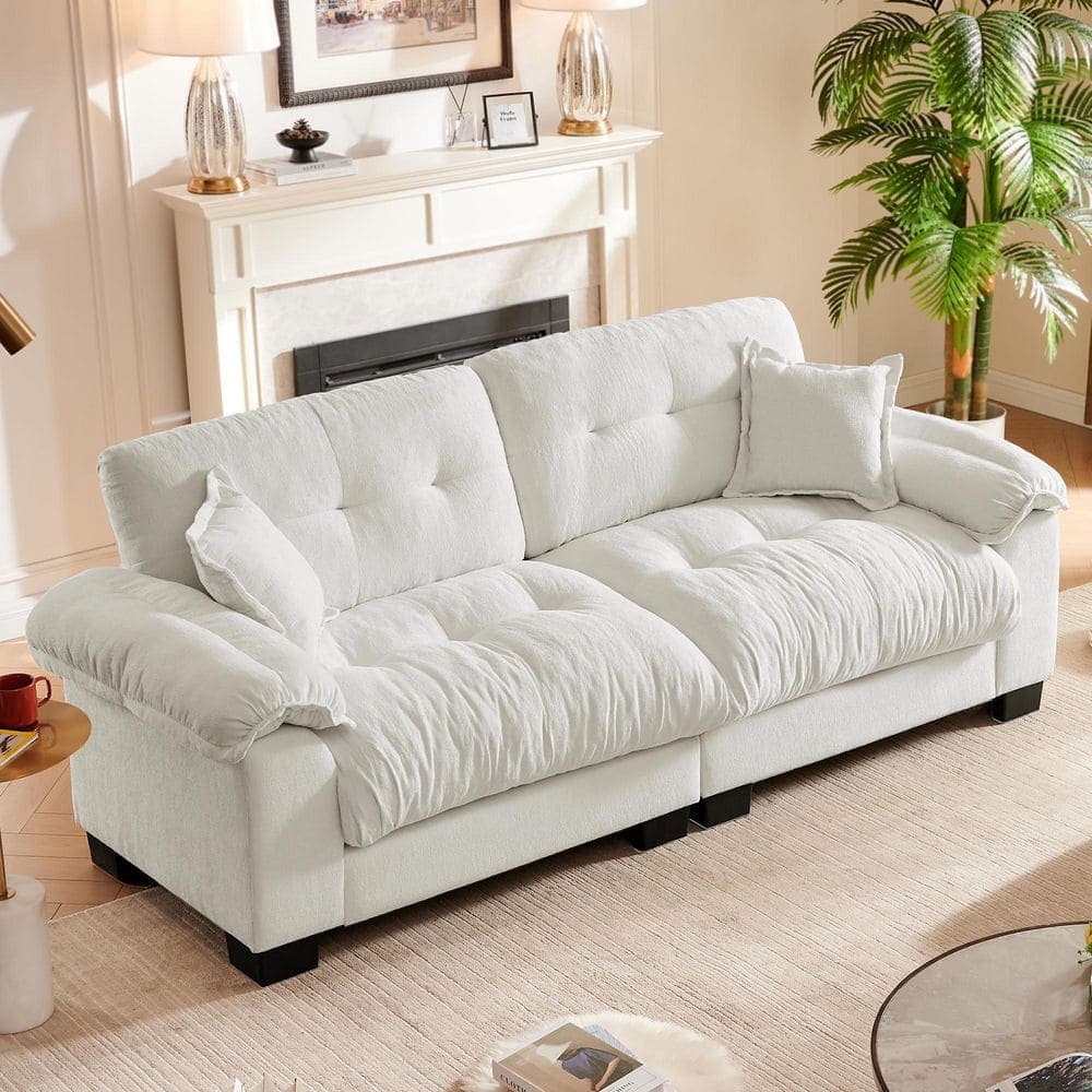 Bring a breath of fresh air into your living room with our white chenille sofa couch. Designed to combine modern aesthetics with supreme comfort, this sofa offers an inviting, sleek design perfect for
