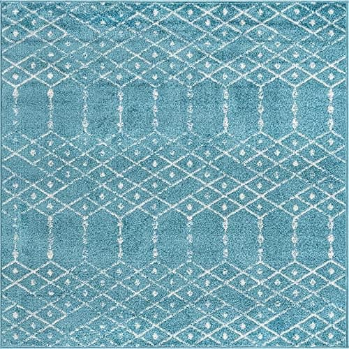 Rugs.com Paxon Trellis Collection Rug – 4 Ft Square Teal Blue Medium-Pile Rug Perfect for Living Rooms, Kitchens, Entryways