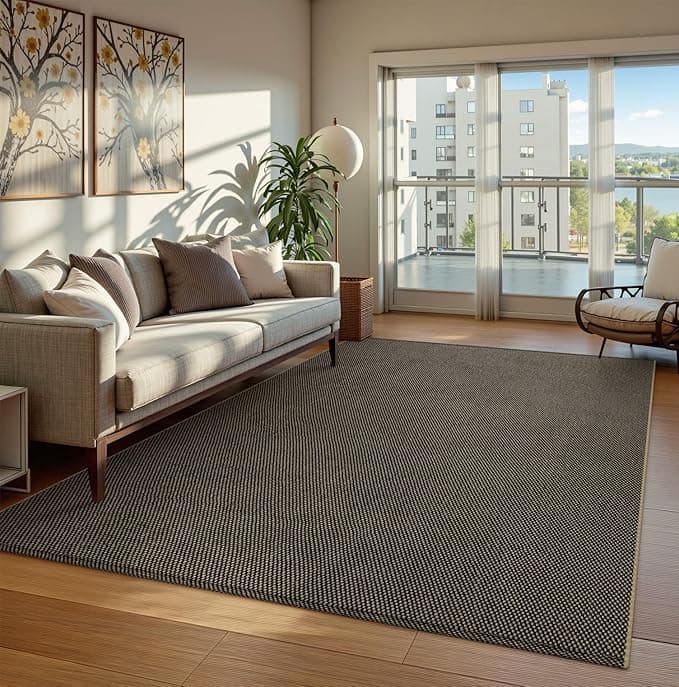 Moynesa Easy Jute Rug 8x10 Area Rugs for Living Room - 8x10 Rug Natural Fiber Rugs for Bedroom, Farmhouse Patio, Hand Woven Sisal Rug for Dining Room, Easy Care Carpet, Black