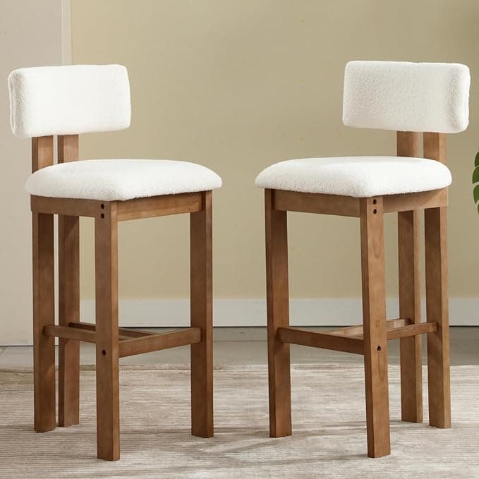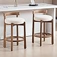 DUOMAY Juego de 2 taburetes de bar modernos de 26 pulgadas de altura de mostrador con respaldo y patas de madera maciza, taburetes de bar modernos de madera con asiento tapizado de sherpa para isla de