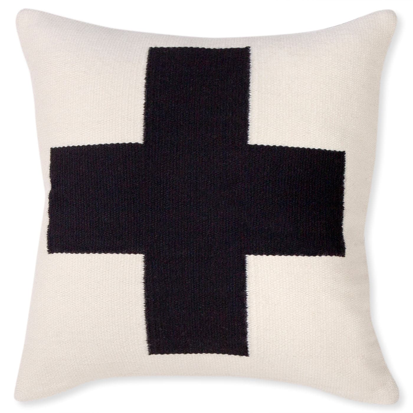 A stylish accent for any room, this pillow features a cross design in black and natural colors. Measuring 16 inches by 16 inches, it adds a touch of modern flair to your home decor.