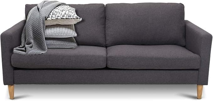 This is our brand new modern sofa which deserves to be owned by you. Made of soft fabric and solid wood frame, the sofa is durable enough to accompany you for many years. While adding an elegant and low-key element to your home, it will also bring you a comfortable sitting feel. The seat and backrest of the sofa are well padded with sponge to offer supportive comfort when you lean on it. It is worth mentioning that the back cover and the seat cover are detachable for easy cleaning. It will be a decorative and comfortable addition to any room and give you another space to read magazines or chat with your family to spend your free time!