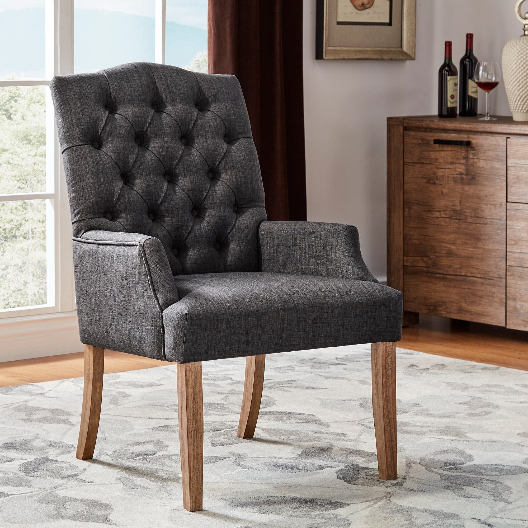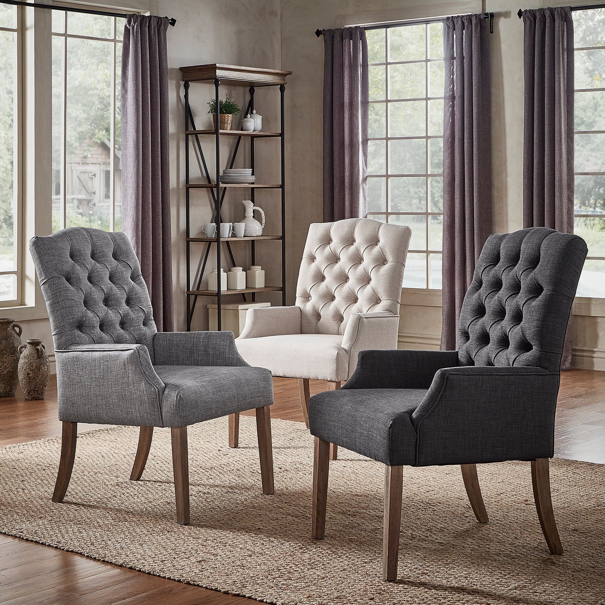Light Distressed Natural Finish Linen Tufted Dining Chair - Dark Gray Linen by iNSPIRE Q Artisan