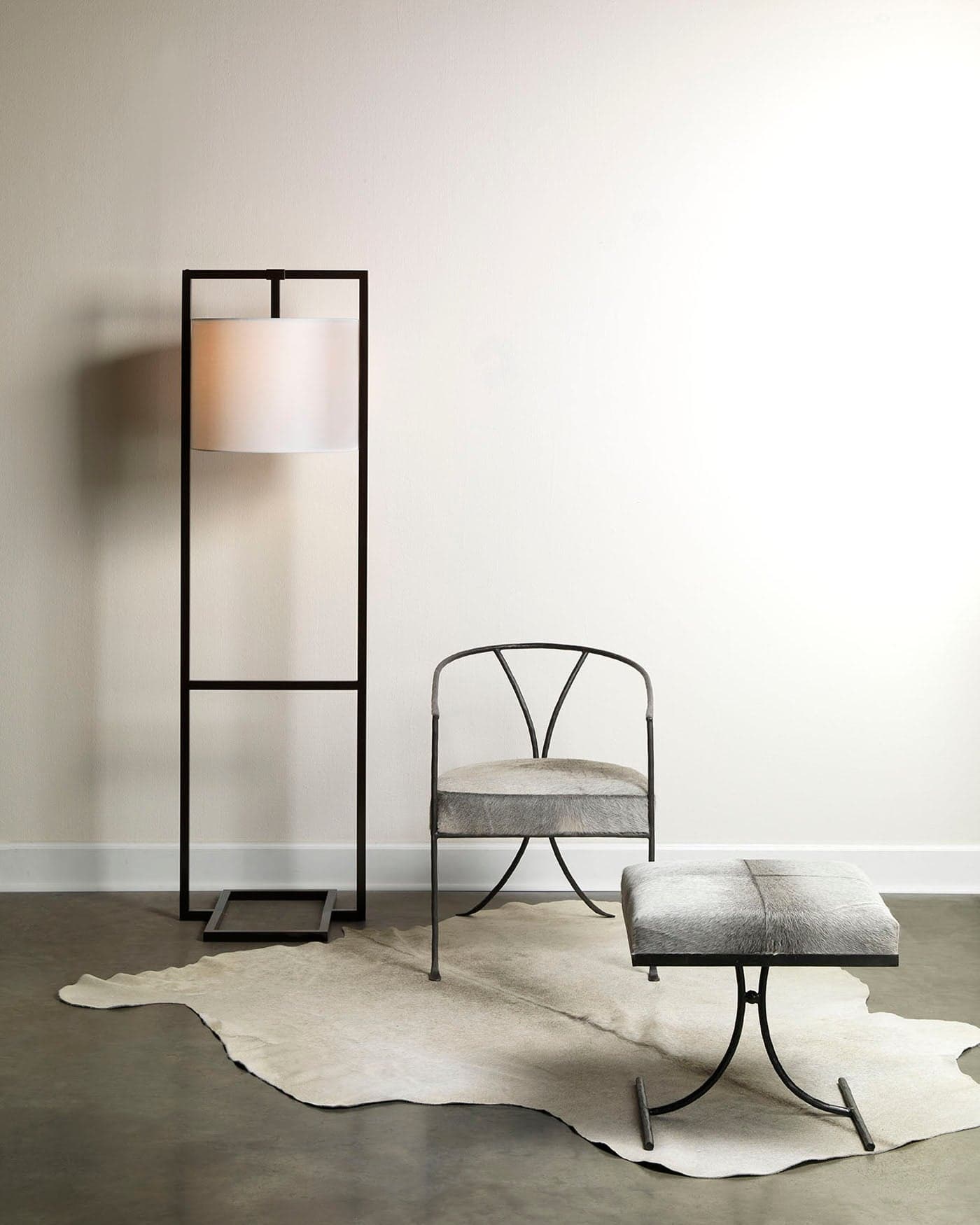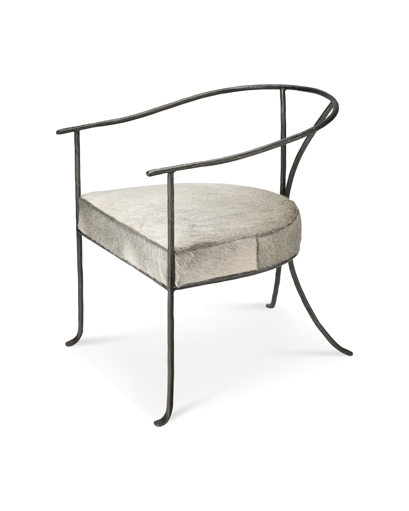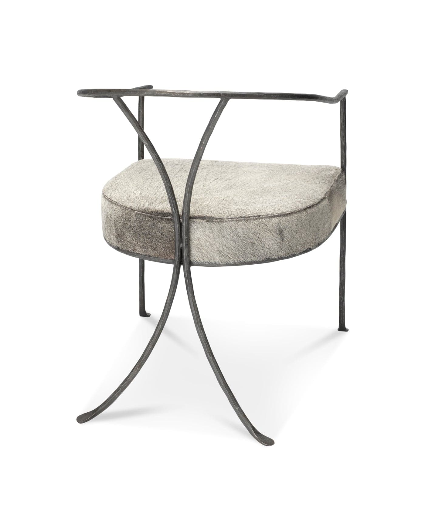 The Kai collection features elegantly swooped hand-forged iron legs that bring an unexpected delicacy to the substantial material. The seating is topped with plush grey hair-on-hide cushions and tables with robust tempered glass. Combining grace with strength, they complement industrial, rustic, or eclectic home styles.
