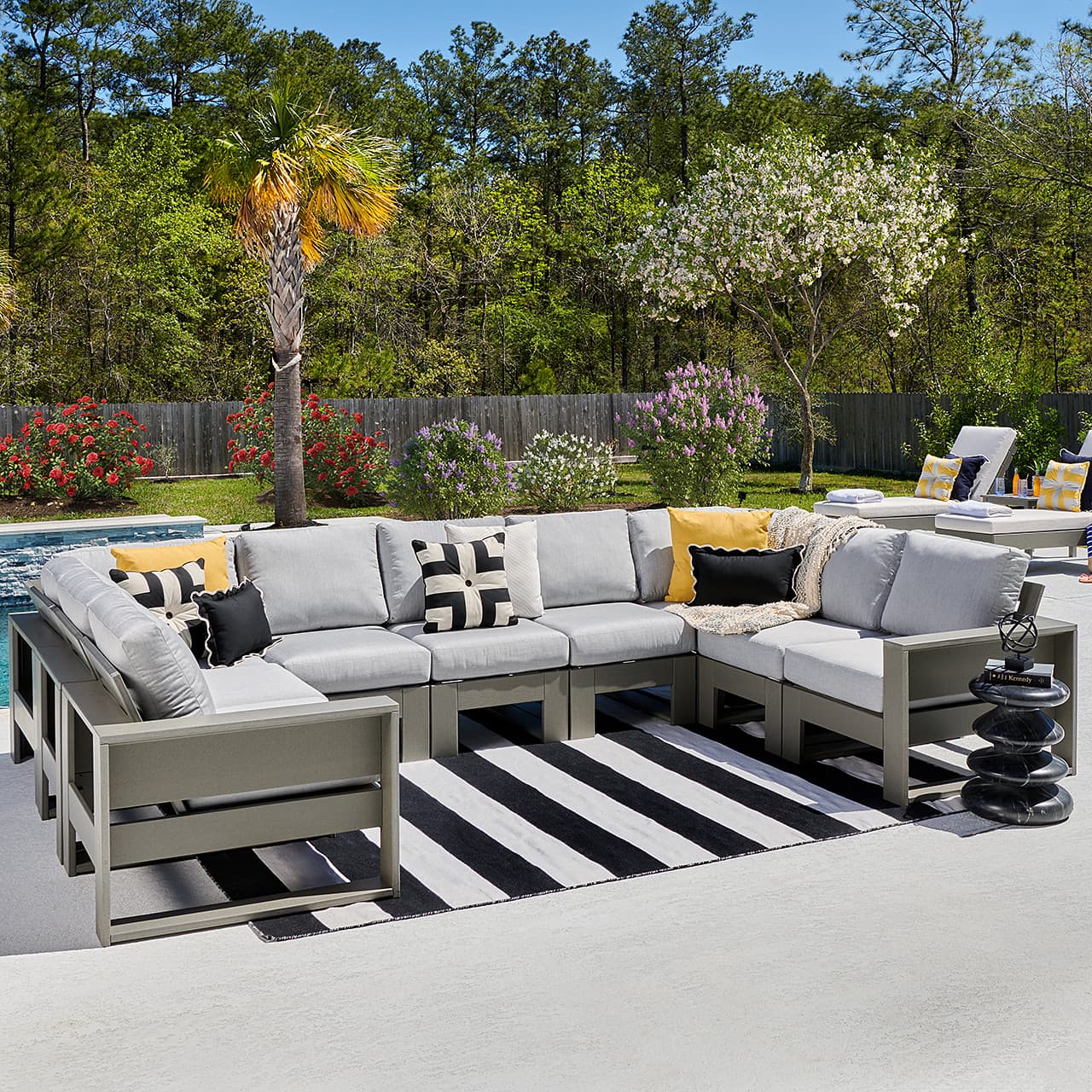 Montauk Polymer with Cushions 9 Piece Modular Sectional (Cast Ash)
