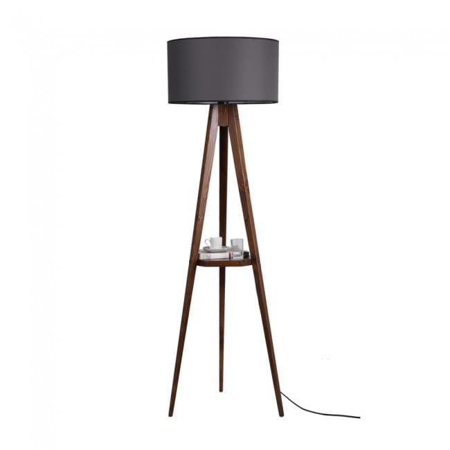 Lampadaire trépied avec étagère Grady Gris - Wonderlamp.fr