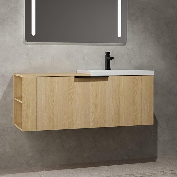 LUMISOL 48" Floating Bathroom Vanity with Sink, Wall Mounted Vanity with 2 Soft-Closing Doors and Shelves, Wood Bathroom Storage Cabinet with Resin Sink, Oak