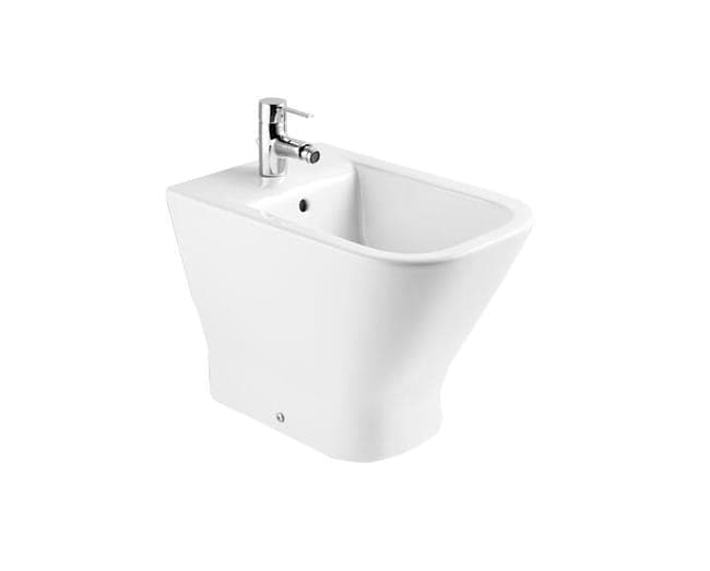 Bidé de porcelana en color blanco. Grifería y tapa de bidé no incluida. Medidas: 35x40x56 cm (ancho x alto x fondo).