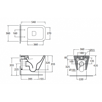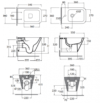 Par de sanitarios suspendidos blanco brillante de cerámica 36x54 cm - Azzurra Ceramica Build