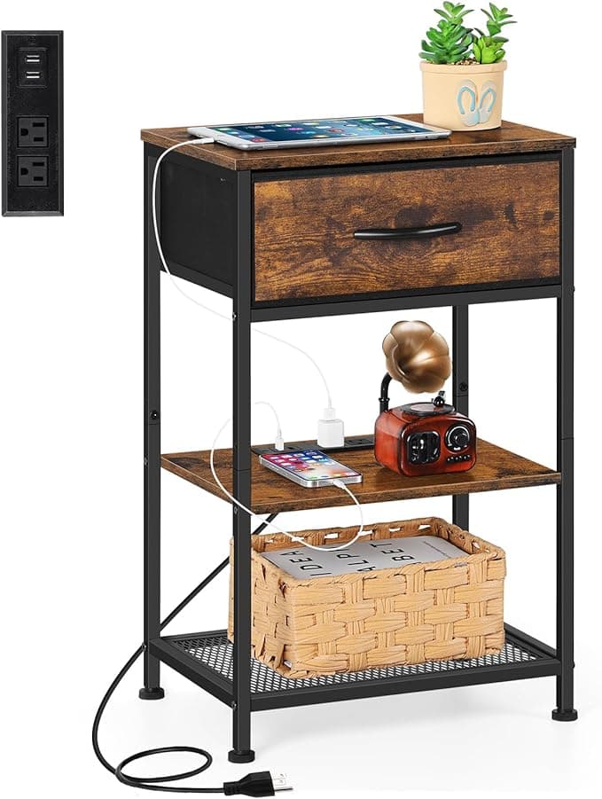 Buy ETELI Nightstand with Charging Station Bed Side Table with Fabric Storage Drawer Small Night Stands for Small Spaces Narrow End Table for Living Room, Bedroom: Nightstands - Amazon.com ✓ FREE DELIVERY possible on eligible purchases