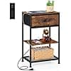ETELI Nightstand with Charging Station Bed Side Table with Fabric Storage Drawer Small Night Stands for Small Spaces Narrow End Table for Living Room, Bedroom