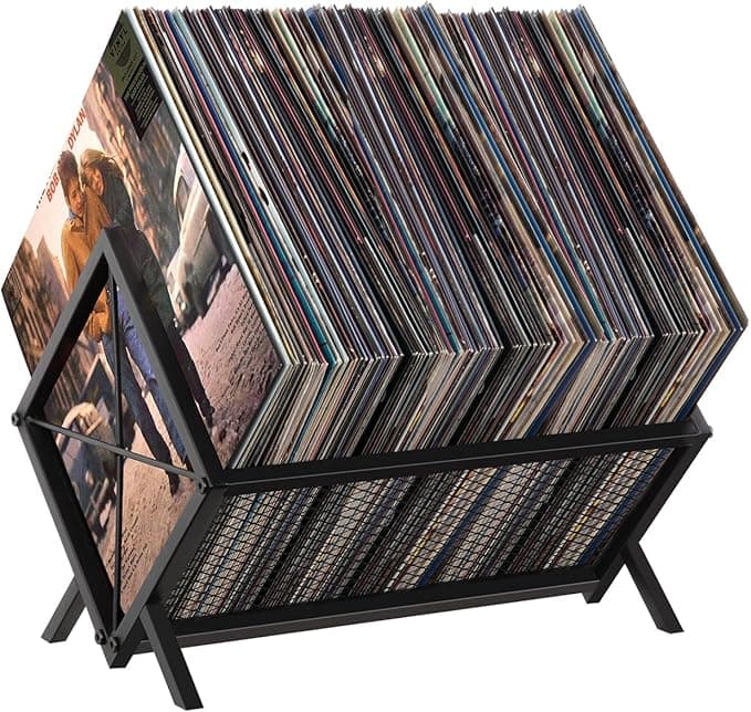 YINMIT Soporte de almacenamiento de discos de vinilo, organizador de vinilo de 80-100 LP, estante de almacenamiento de álbumes, estantes de exhibición de discos de vinilo de metal, soporte de álbum de