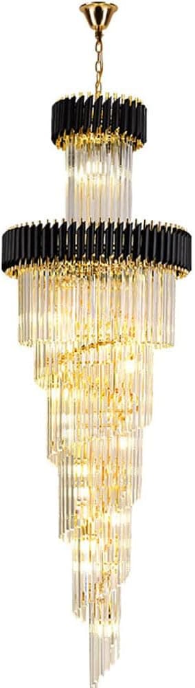 HMLVRA Modern Crystal Long Chandelier for High Ciling,Luxurious Staircase Pendant Light Adjustbale Height E12 Bulb Gold/Black 51/59/67" Chandelier for Villa Spiral Staircase