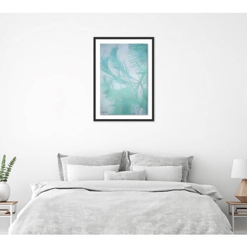 Capturing the essence of tropical serenity, this framed photograph by Carly Tabak features palm trees mirrored in water and is ready to hang. With a deep passion for photography, she has earned recognition as a landscape artist in the San Francisco Bay Area. Carly, an explorer at heart, crafts photos representing her unique adventures.