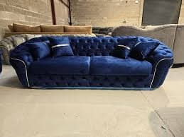 3+2 Ambassador Chesterfield Sofa (Blue Plush Velvet) – Sturdy Sittings Ltd