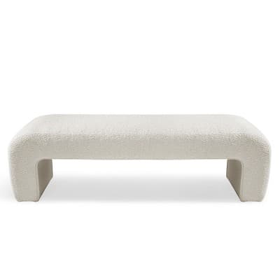 Lily 60" Off-white Boucle Look Large Entryway Waterfall Upholstered Bench-the Pop Home