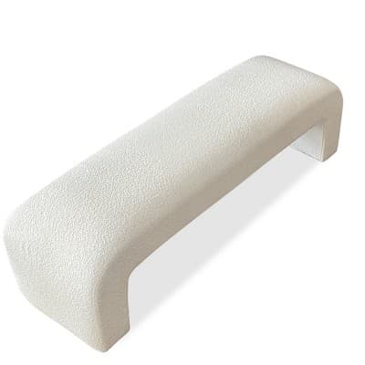 Transform your living space into a stunningly minimalist oasis with this striking pouf bench. Fully upholstered in sumptuous boucle fabric, this bench showcases a visually captivating waterfall shape in an inviting cream color that blends seamlessly into any decor scheme. Its solid wood frame is thicker and stronger, ensuring both sturdiness and style. Measuring 60 inches in length, this upgraded version of the bench provides ample seating for two people, making it an ideal choice for any room in your home. With its seamless combination of comfort and style, this bench is sure to impress your guests from all angles. Elevate your space today with this statement piece.