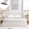 Meridian Furniture MonacoCream-Q Monaco Collection Modern | Contemporary Boucle Fabric Upholstered Queen Bed with Solid Wood Natural Wire Brush Finish, 65.5" W x 87.5" D x 52" H, Cream, Queen