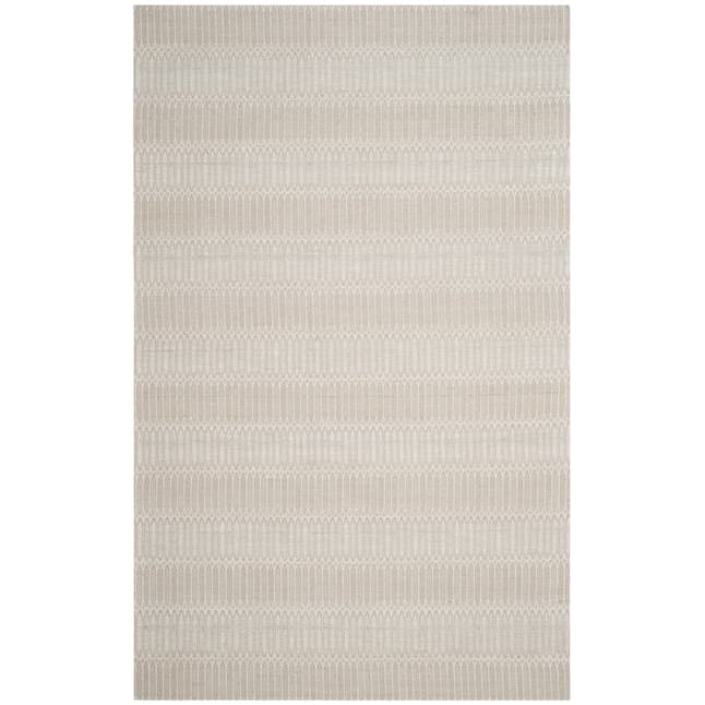 Shop Safavieh Marbella Matejka 5 x 8 (ft) Loomed Synthetic Beige Rectangular Indoor Stripe Area rug in the Rugs department at Lowe's.com. The Marbella Collection displays the simple elegance of hand woven flat weave rugs in a marvelous array of colors and styles. These classy-casual floor coverings are made using durable synthetic yarns and finished with a soft cotton backing for cushioned feel underfoot and long lasting, contemporary style in room decor.