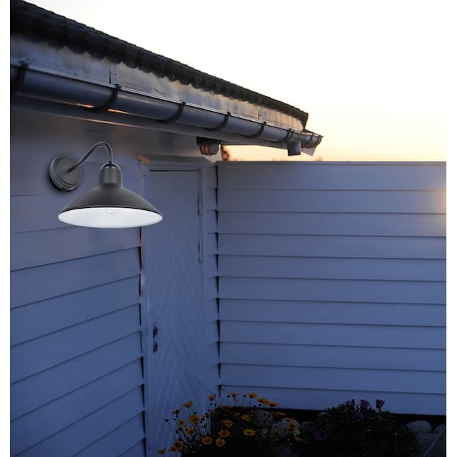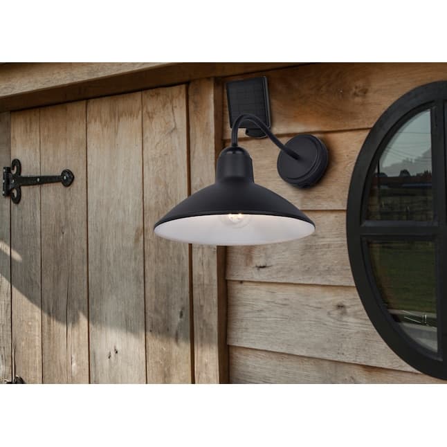 allen + roth Barn Light 1-Light 10.63-in H Matte Black Solar Outdoor Wall Light