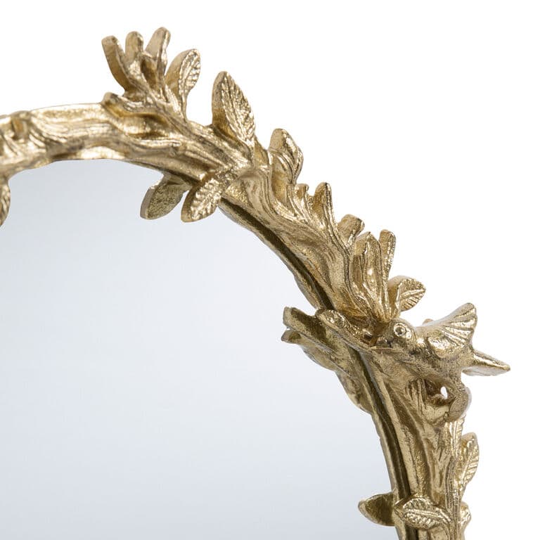 Round Antique Gold Vintage Botanical Mirror