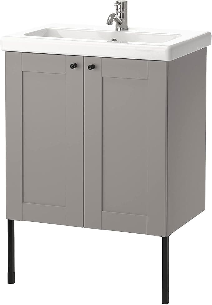 Ikea TVÄLLEN/ENHET washbasin unit with 2 doors, 64x43x87 cm, grey frame/grey Pilkån tap