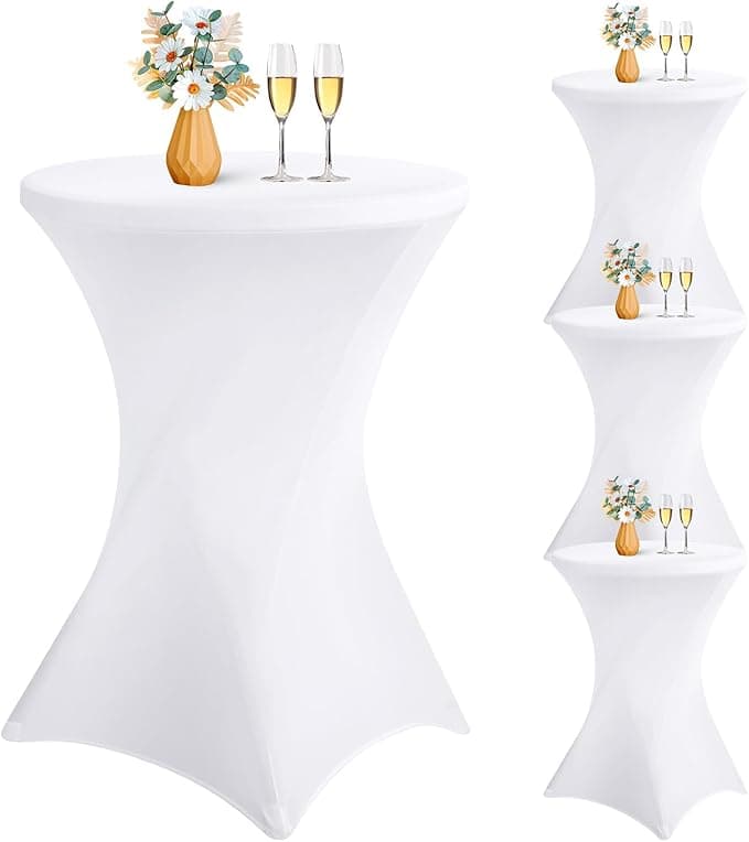 Achetez Lot de 4 Housses de Table de Cocktail en élasthanne, Coins carrés Extensibles, Nappe de Cocktail en élasthanne, Table Ronde Haute pour Bar, fête, Table d'anniversaire de Mariage (Blanc, 80 x 110 cm): Amazon.fr ✓ Livraison & retours gratuits possibles (voir conditions)