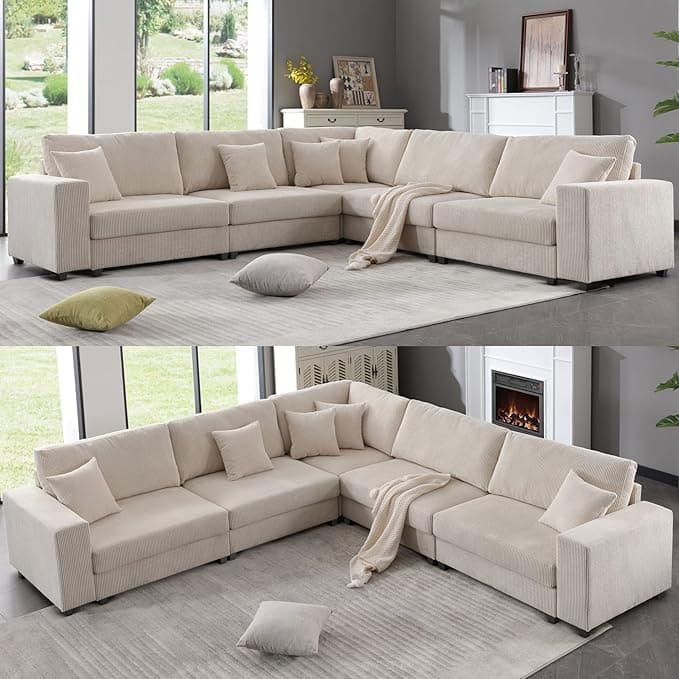 Yogald Luxury Oversized Modular Sectional Sofa, L-Shaped Sectional 5 Seat Deep Seat Couch, and Soft Corduroy Fabric with 5 Pillows, for Living Room, Office (117.2‘’ Beige)