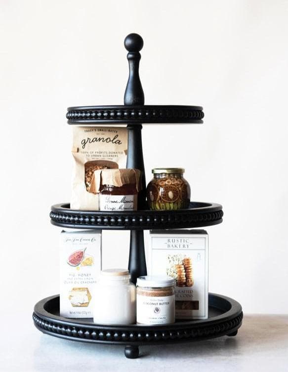 Black Beaded 3-Tier Wooden Tray. This Stylish Farmhouse 3-Tiered Tray is perfect for any island, buffet, console or table! Have fun changing out decor with the Seasons!